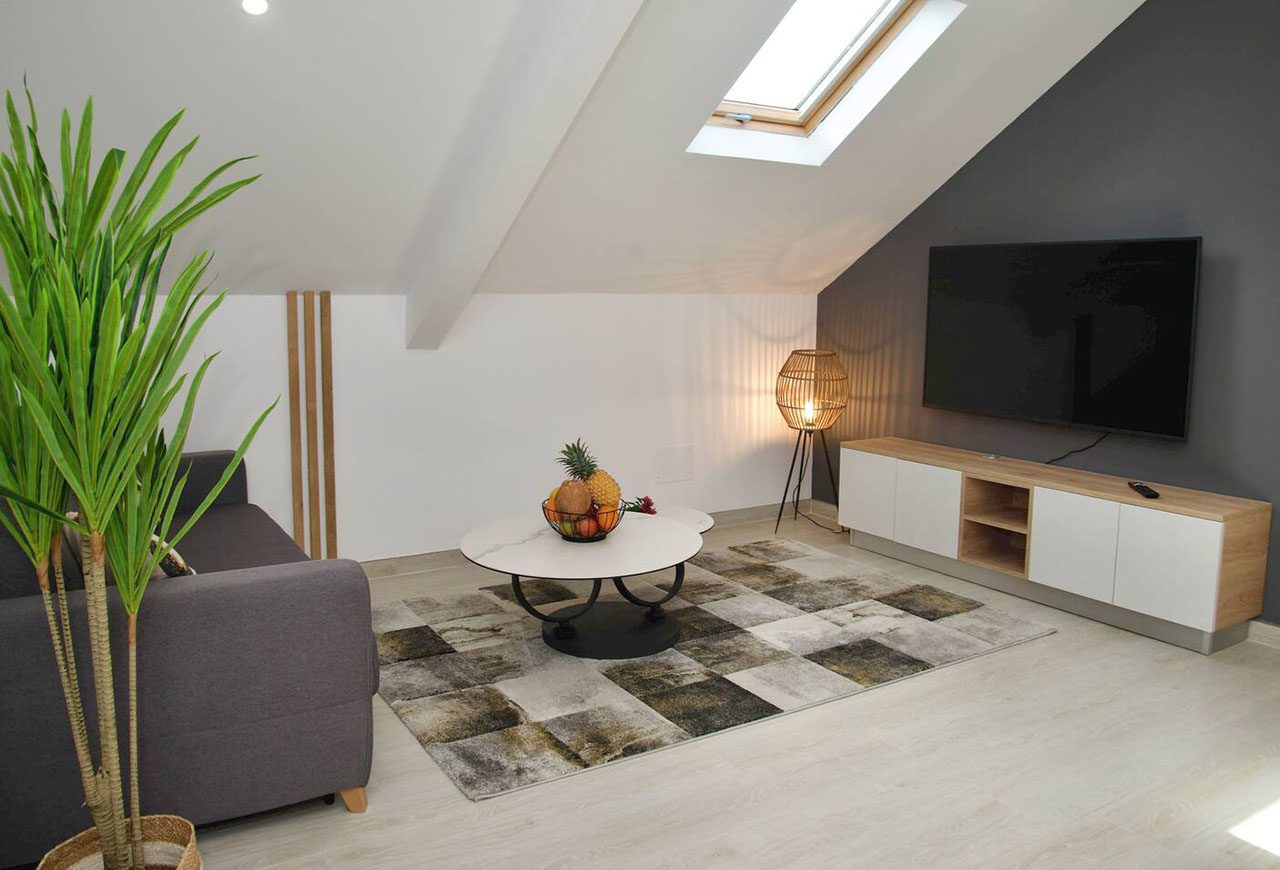 Le canapé-lit est un lit d’appoint, la table à manger est pour 4 personnes.
